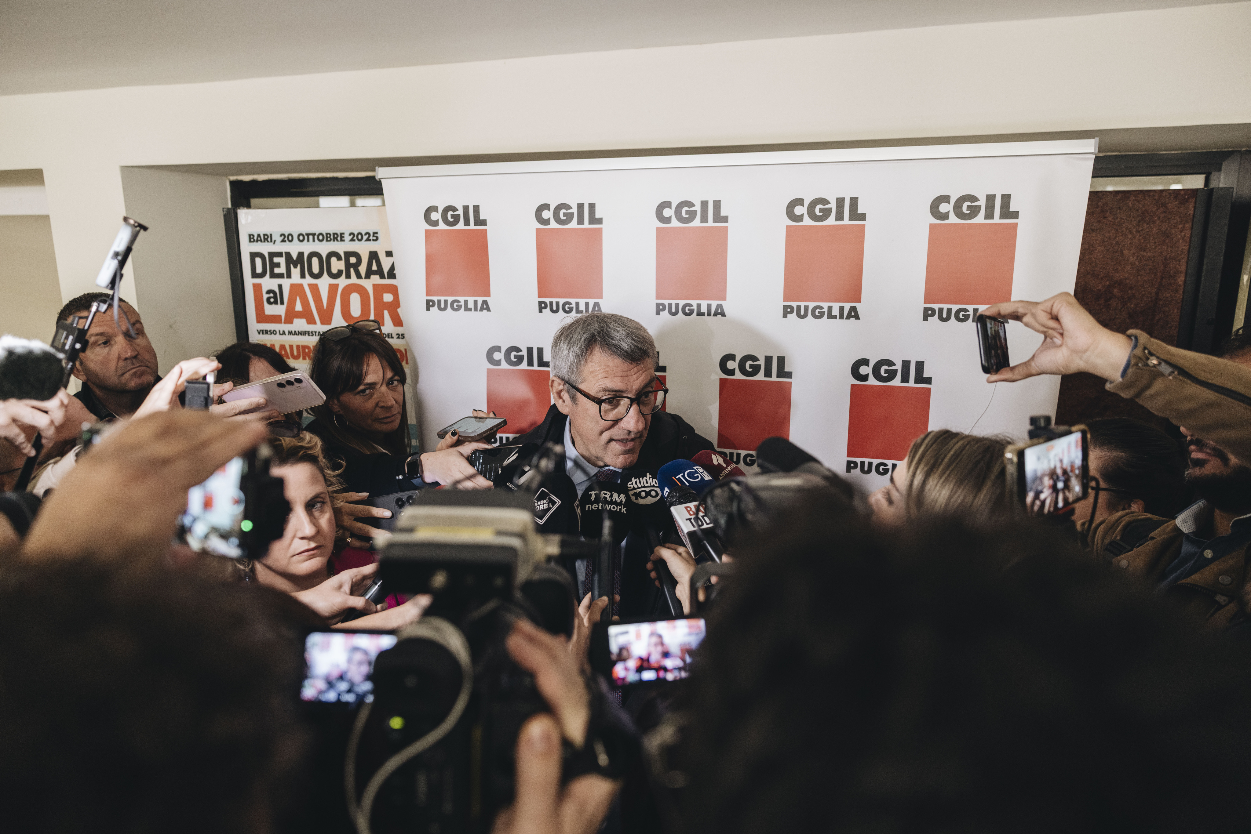 Vertenze sanità e industria, Landini a Bari (20 ottobre 2025)